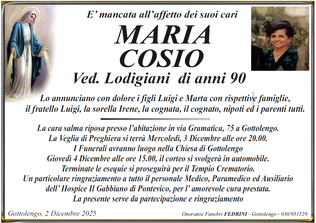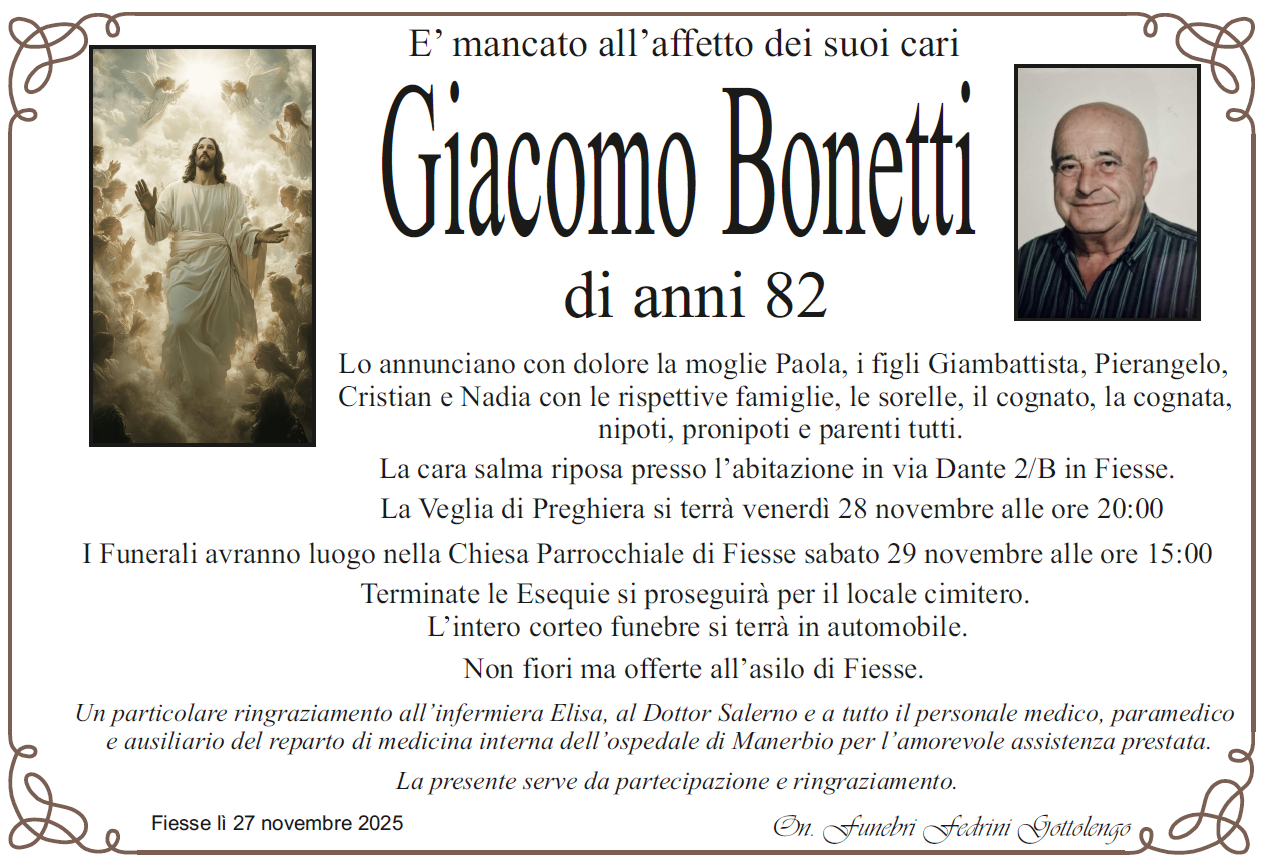 Le Onoranze Funebri Fedrini operano con discrezione, puntualità e professionalità in tutta la provincia di Brescia, garantendo un supporto rispettoso e attento in ogni fase. Questo spazio dedicato ai messaggi di cordoglio nasce per permettere a parenti, amici e conoscenti di lasciare un pensiero di affetto e solidarietà, offrendo conforto alla famiglia in un momento di profondo dolore.